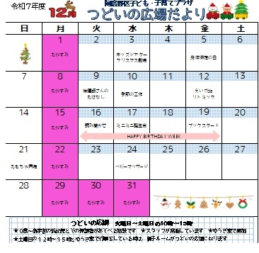 乳幼児と保護者(つどいの広場)10:00~15:00(日曜日はおやすみ)