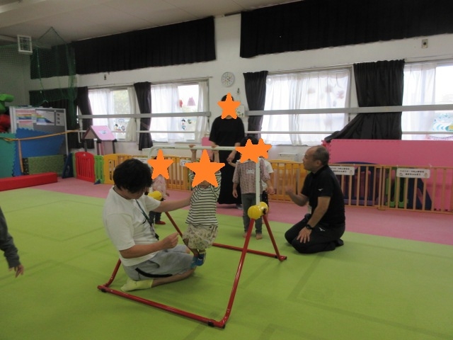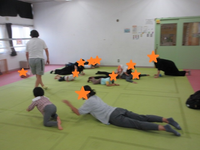 クマ歩き、ワニ歩きなど動物に変身して体を動かしたり、前転や鉄棒など、