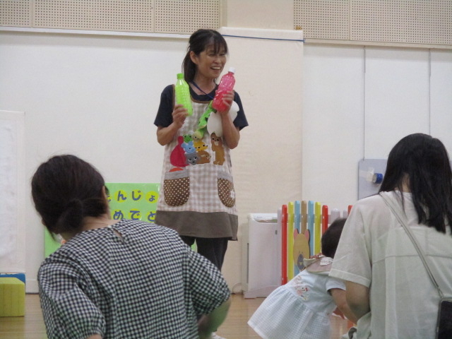10月15日(水)にお誕生日会をしました。お名前を呼んでケーキにいちごを貼ったあと、今回はミックスジュースのパネルシアターをしました。ミックスジュースの歌をみんなで歌って楽しみました。参加した方にも、フリフリジュースを作ってもらったりしてました。