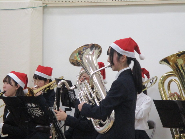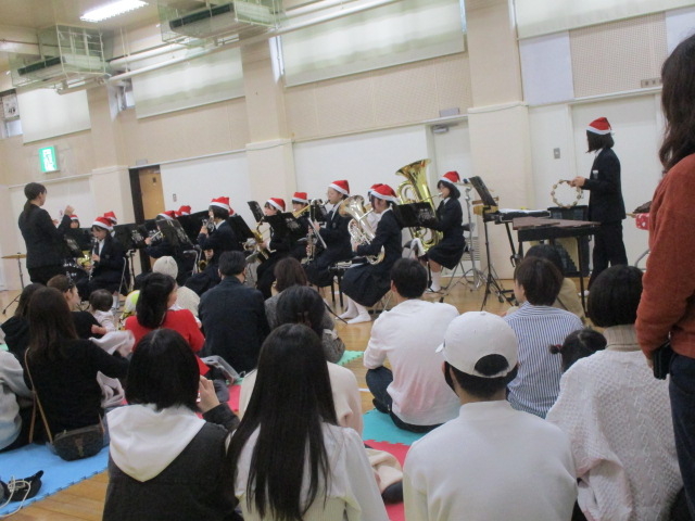豊崎中学校吹奏楽部を迎えてクリスマスコンサートを開催しました。併設の大淀老人福祉センター利用者のみなさんと一緒にクリスマスソングなどを楽しみました。