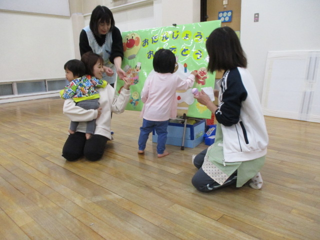 歌や紙芝居などのお楽しみでお誕生日をお祝いします。